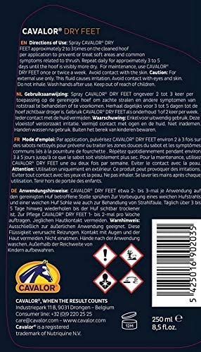 New Cavalor Dry Feet250ml Feuchtigkeit und Schmutz können dazu führen, dass der Hufstrahl weich wird und in der Folge Strahlfäule entsteht. Cavalor Dry Feet wirkt schnell und effizient.